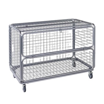 Carrello a Gabbia Pieghevole a Quattro Ruote per Logistica, in Acciaio al Carbonio Zincato, con Chiusura a Fibbia