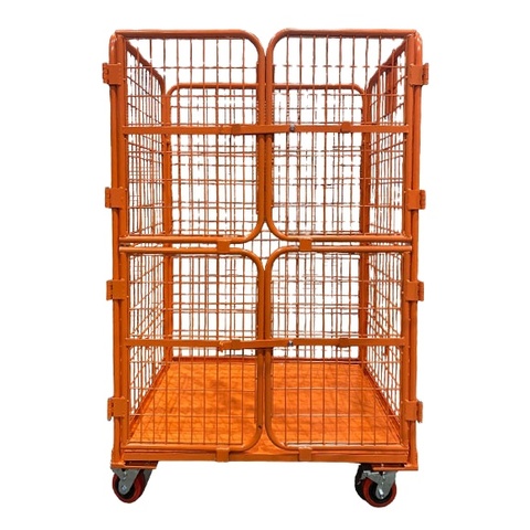 Heavy Duty Steel 4-Sided Security Wire Mesh Roll Container for Warehouse Medium Duty Storage & Logistics Transport