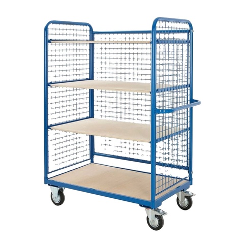 Industrial Heavy Duty 3 Mesh Sides Steel Level Adjustable Storage Rolling Platform Wire Shelf Trolley