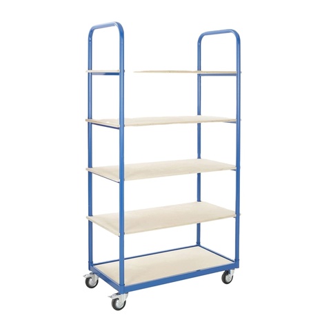 Stockroom Steel Frame MDF Shelves Order Picking Narrow 5 Levels Shelf Trolley