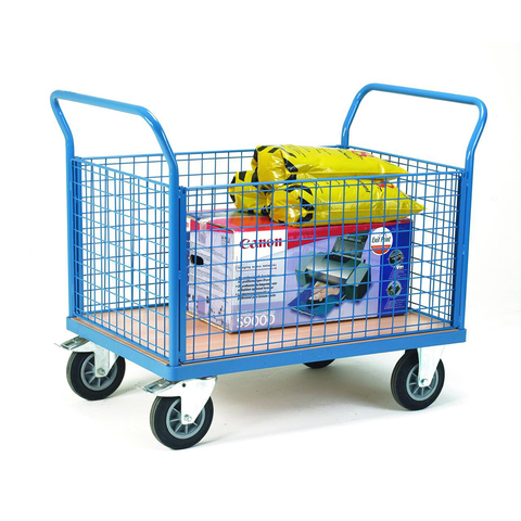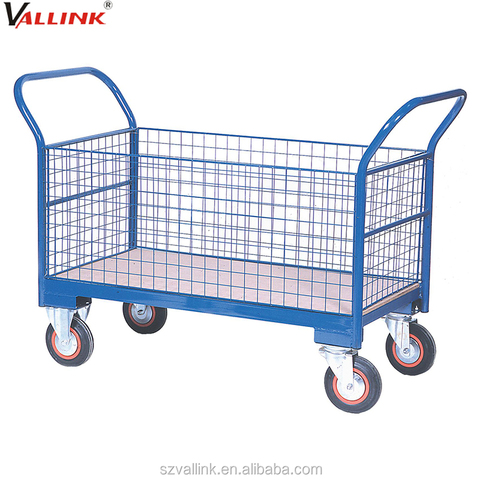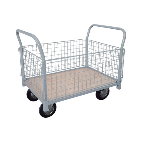 Industrial Portable Goods Moving Steel Wire Mesh Sides Platform Trolley